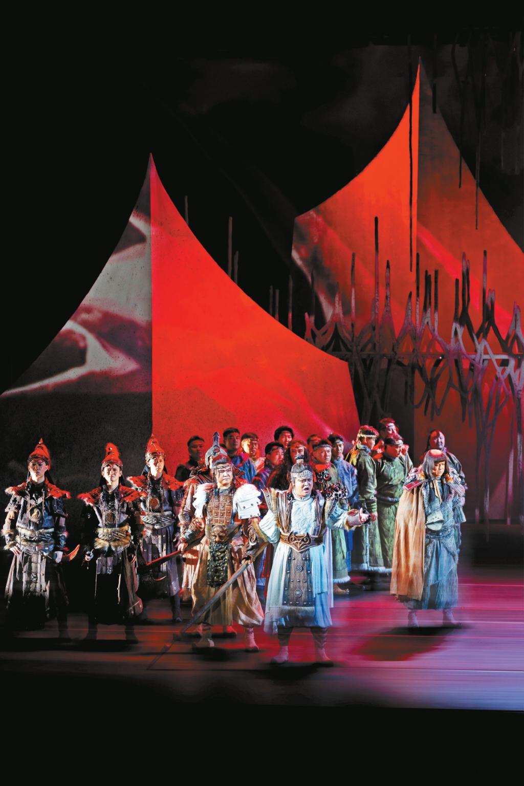 歌劇達到的高度往往和整個歌劇制作流程的規(guī)范是分不開的。一部歌劇要想把作曲家的樂譜轉(zhuǎn)化成完整的演出呈現(xiàn)在舞臺上,需要經(jīng)歷做音樂作業(yè)、坐排、合成等數(shù)個環(huán)節(jié)。作為舞臺領(lǐng)域的專家,陳蔚與地方合作的時候,都不遺余力地推廣科學的演出制作流程。在排演內(nèi)蒙古藝術(shù)劇院的首部歌劇《江格爾》時,陳蔚從給演員上戲劇表演、形體集訓課開始,一點點地將科學的流程蘊含在日常的工作中,對當?shù)氐谋硌蓐犖楹湍缓髨F隊進行了系統(tǒng)培養(yǎng)?!耙钊胪诰蛎總€演出團體的藝術(shù)特長,真正站在地方院團的角度打造劇目,發(fā)揮其特長,彌補其不足?!标愇当硎?,唯有充分調(diào)動各方力量,減輕地方負擔,讓作品越演越有價值,才能真正留下精品。