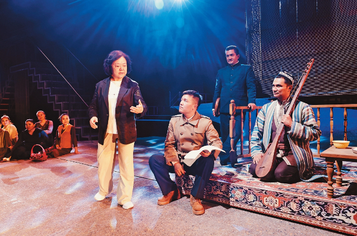 無論是《漢口茶港》中茶商抗日的英雄氣概,《奧涅金》中對真摯愛情的永恒追求,還是《原野》中對人性復雜性的深刻揭示,她的作品總能在具體故事中提煉出超越時代的價值。而對于《木卡姆戀歌——萬桐書》,她更看重作品在鑄牢中華民族共同體意識方面的現(xiàn)實意義,“無論從當年萬桐書先生到新疆搶救木卡姆,還是我們劇組本身,我的執(zhí)行導演是維吾爾族,演員隊伍也是多民族的,整個劇組就是一個大家庭?!?/p>