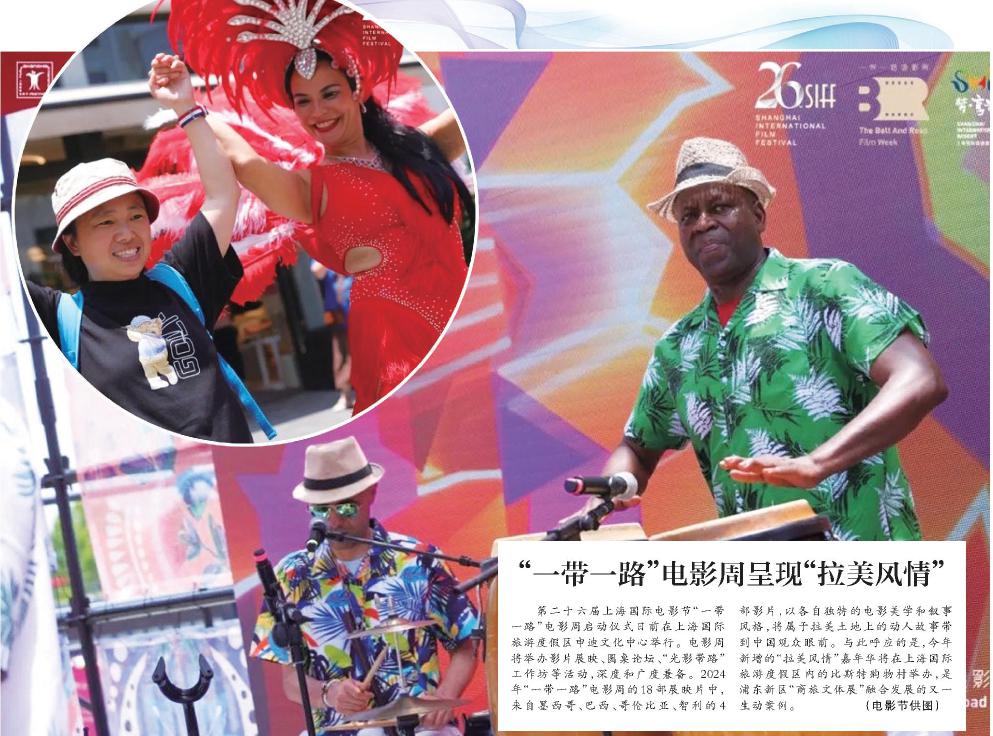 第二十六屆上海國際電影節(jié)“一帶一路”電影周啟動儀式日前在上海國際旅游度假區(qū)申迪文化中心舉行。電影周將舉辦影片展映、圓桌論壇、“光影帶路”工作坊等活動,深度和廣度兼?zhèn)洹?024年“一帶一路”電影周的18部展映片中,來自墨西哥、巴西、哥倫比亞、智利的4部影片,以各自獨特的電影美學(xué)和敘事風(fēng)格,將屬于拉美土地上的動人故事帶到中國觀眾眼前。與此呼應(yīng)的是,今年新增的“拉美風(fēng)情”嘉年華將在上海國際旅游度假區(qū)內(nèi)的比斯特購物村舉辦,是浦東新區(qū)“商旅文體展”融合發(fā)展的又一生動案例。 (電影節(jié)供圖)