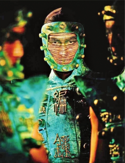 楊麗萍介紹,《荊楚映象》以“荊楚”為題,展現(xiàn)中華民族文化和中國(guó)人文精神的豐富性與多樣性,表達(dá)浪漫主義精神。此次在舞臺(tái)上將直觀地呈現(xiàn)那些華麗的想象——頂天立地的青銅巨門、高達(dá)6.5米的巨型編鐘、精美的玉覆面、靈動(dòng)的車馬人物出行圖。屈原《九歌》世界中的巍巍眾神,還有后羿是怎樣射日的、山鬼是怎樣騎豹的、鳳凰是怎樣浴火重生的……也將在舞臺(tái)上以大家難以想象的方式一一呈現(xiàn)。