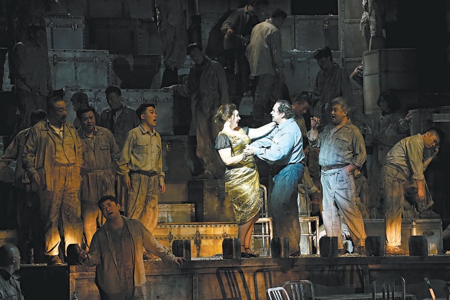 頗有年代感的大皮箱擺了一地,臺球桌橫陳潦草,酒杯滿天亂飛,酒館老板、礦工、盜匪粉墨登場,一派粗糲的莽荒氣質(zhì)撲面而來,如同一部酣暢淋漓的西部大片。上周末,國家大劇院制作的普契尼歌劇《西部女郎》正在緊張彩排,7月23日至27日,著名指揮家卡羅·利茲將執(zhí)棒國家大劇院管弦樂團,攜手中、美、意三國藝術(shù)家組成的創(chuàng)演陣容,把這部描寫加利福尼亞淘金熱的歌劇帶上2024國家大劇院歌劇節(jié)的舞臺。
