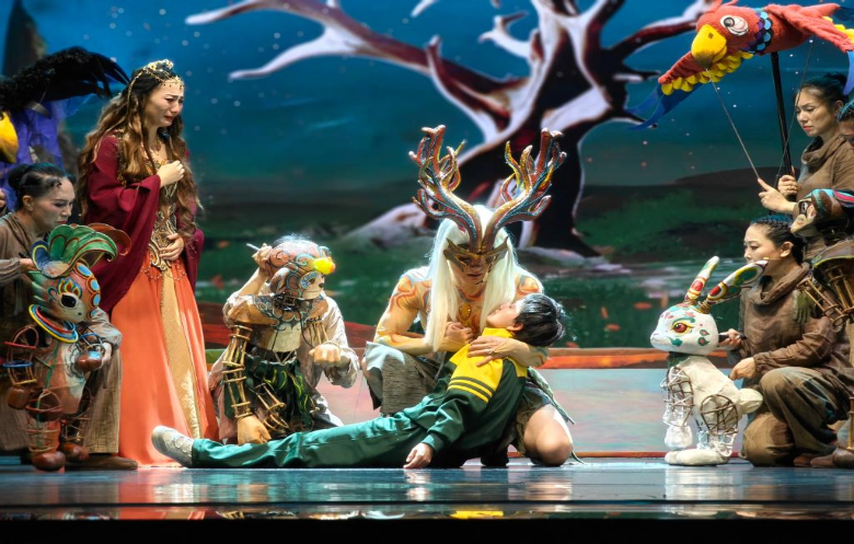 天津市兒童藝術(shù)劇團(tuán)團(tuán)長(zhǎng)宋永順介紹,《敦煌·九色鹿王》是用XR數(shù)字科技替代傳統(tǒng)舞臺(tái)實(shí)景的戲劇,也是推動(dòng)中華優(yōu)秀傳統(tǒng)文化創(chuàng)造性轉(zhuǎn)化創(chuàng)新性發(fā)展的藝術(shù)實(shí)踐。該劇秉承讓文物說(shuō)話、讓歷史說(shuō)話的創(chuàng)作理念,希望通過(guò)戲劇、木偶、音樂、歌舞、數(shù)字技術(shù)、AI人工智能等多元化技術(shù)和藝術(shù)手段,幫助廣大少年兒童更好認(rèn)識(shí)和認(rèn)同中華文明。