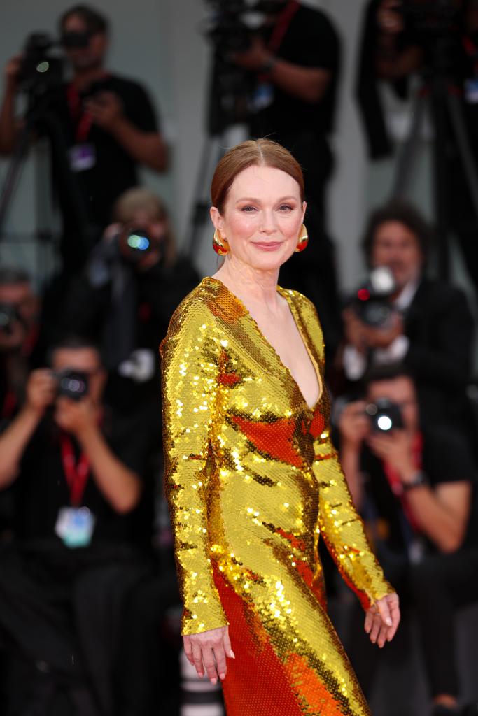 9月2日,在意大利威尼斯舉行的第81屆威尼斯國際電影節(jié)上,主競賽單元影片《隔壁房間》演員朱麗安·摩爾亮相首映式紅毯。新華社記者 李京 攝