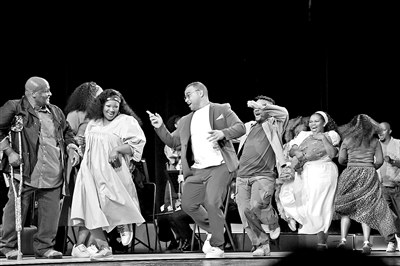 正因為是半舞臺版本,對演員的表演也是更大的挑戰(zhàn)。貝絲的扮演者諾蘭拉·延德表示,“演員必須全情投入,去挖掘自己的潛能。即使聚光燈沒打在身上時也不能停歇。”來自南非開普敦歌劇院的演員們,充分發(fā)揮了嗓音、舞蹈、聲樂技巧、表演魅力的優(yōu)勢,無論是否在聚光燈下,他們都不遺余力,為大家獻上了一場精彩紛呈的演出。