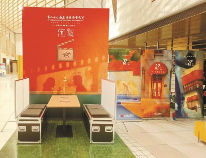 今年上海國際電影節(jié),影迷不僅能站在主題海報前拍照,還可以“入畫”打卡,成為主角。昨天,記者在部分影院看到,第27屆上海國際電影節(jié)主視覺海報被還原搭建為三維場景裝置,一桌二椅皆成實景,影迷可以入內(nèi)拍照留念,也可在此交談、小憩。