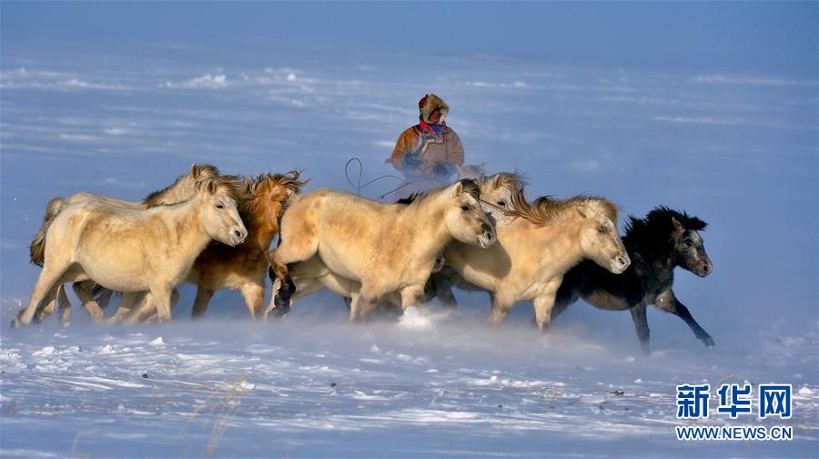 1月5日,蒙古族牧民在套馬。當(dāng)日,2016年烏珠穆沁馬文化節(jié)在內(nèi)蒙古錫林郭勒盟西烏珠穆沁旗吉仁高勒鎮(zhèn)舉行。當(dāng)?shù)孛晒抛迥撩裆碇A麗的民族服飾,帶著馬匹從四面八方趕到會場,參加賽馬、套馬、乘馬拾物、蒙古馬選美等多項(xiàng)具有民族特色的活動(dòng),吸引大批游客前來觀看。新華社記者 任軍川 攝