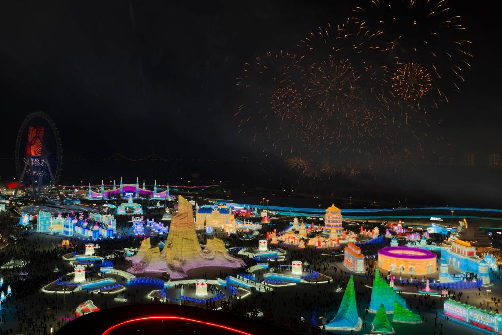 1月5日17時(shí)許,松花江北岸,夜空被璀璨的煙火點(diǎn)亮。在零下十幾攝氏度的嚴(yán)寒中,第42屆中國·哈爾濱國際冰雪節(jié)在哈爾濱冰雪大世界啟幕!