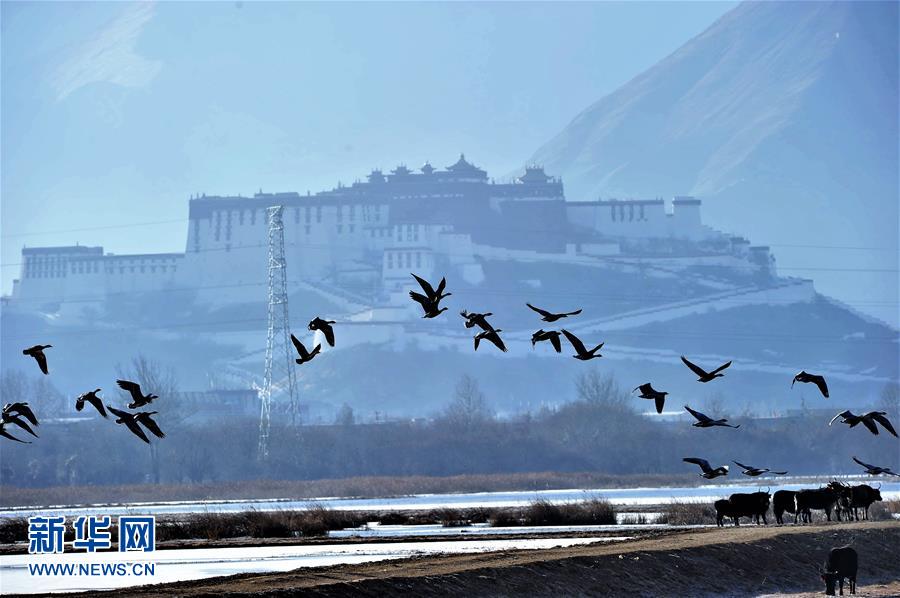 水鳥飛翔在拉魯濕地上空(1月7日攝)。入冬以來,位于拉薩城邊的拉魯濕地國家級自然保護(hù)區(qū)候鳥增多,斑頭雁、赤麻鴨、野鴨等數(shù)十種候鳥在這里過冬。拉魯濕地國家級自然保護(hù)區(qū)海拔3600多米,總面積12.64平方公里,是中國海拔最高、面積最大的城市天然濕地,被譽(yù)為“拉薩之肺”。新華社記者 張汝鋒 攝