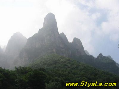 五老峰史稱東華山,歷史上為北方道教名山,海拔1809.3米,奇峰險(xiǎn)峻,需攀鏈而上,屬丹霞地貌。這里是層層峰巒,森林古木,各種生物覆蓋著整個(gè)山野?;t草綠,山光水色,風(fēng)光旖旎非凡,故有“北有五臺(tái)觀庫存宇,南在五老看風(fēng)光”之說。游人往縣城西南遠(yuǎn)眺,見有東錦屏峰、西錦屏峰、太乙坪峰、棋盤山峰四山峰仙態(tài)神姿,隱現(xiàn)于云煙蒼茫之中,將高1809.3米的玉柱峰環(huán)抱其中,“有偃蹇傴樓之伏”,猶如五位老人抱拳作揖迎貴賓之勢(shì),故名五老峰。