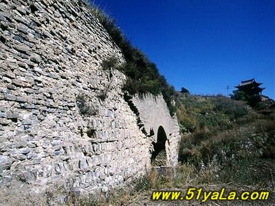 現(xiàn)存雁門關(guān),基本保持完整,整個關(guān)城雄偉壯觀,左右邊墻雉諜,烽墩壕塹俱備,誠有“城隨山勢轉(zhuǎn),關(guān)并塞云齊”之威。雁門關(guān)西北,約10公里處有廣武城,分新、舊廣武城兩堡。舊廣武城,是一處長方形古代城堡,10多米高的長城,為條石基磚包砌。城堡除垛上女兒墻損壞外,其余保存較好。城頭上有石碑,是公元1725年所立。