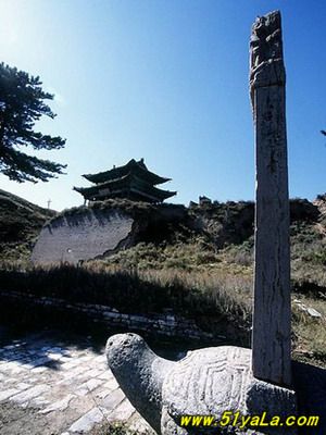 雄關(guān)雁門,居“天下九塞”之首(《呂氏春秋》)。從戰(zhàn)國時期的趙武靈王起,歷代都把此地看作戰(zhàn)略要地。趙置雁門郡,此后多以雁門為郡、道、縣建制戍守。雁門關(guān)之稱,始自唐初。因北方突厥崛起,屢有內(nèi)犯,唐駐軍于雁門山,于制高點鐵裹門設(shè)關(guān)城,戍卒防守?!短茣?middot;地理志》描述這里“東西山巖峭拔,中有路,盤旋崎嶇,絕頂置關(guān),謂立西徑關(guān),亦曰雁門關(guān)?!焙蠼?jīng)五代十國、宋、遼、金、元約四百余載。元朝設(shè)千戶所,關(guān)城被毀。明代吉安侯陸享于洪武七年(1374)自監(jiān)民工筑新關(guān)于舊關(guān)東北十里處的要道。南距代城縣四十余里,北鄰廣武古城二十一里,地勢更為險要。明末清初的著名學(xué)者顧炎武曾親臨此地。他寫道“雁門重關(guān),山巒在演,霞飛云舉,兩山對峙,其形如門,而飛雁出于其間?!痹撽P(guān)城,周長二里,墻高二丈,石座磚身,雉堞為齒,洞口三重,曰東門、西門、小北門。東門上筑樓臺,曰雁樓,門額嵌石匾一方,橫書“天險”(即“天險”)。西門上筑有楊六郎廟,門額嵌石匾一方,橫書“地利”(即“地利”)。小北門未設(shè)頂樓,但磚石結(jié)構(gòu),格外雄固。門額石匾橫刻:“雁門關(guān)”三字。洞門兩側(cè)鑲嵌磚鐫楷書檢聯(lián):“三關(guān)沖要無雙地,丸塞尊崇第一關(guān)?!睎|門外北側(cè)建有“靖邊寺”祀戰(zhàn)國時代的軍事家趙將李牧。西門外右側(cè)建有關(guān)帝廟。關(guān)城正北置有駐軍營房,東南設(shè)有練兵教場。整個關(guān)城建筑,虎踞龍盤,雄偉壯觀。明清以后,關(guān)城雖屢有重建。但隨著我多民族統(tǒng)一國家疆域的逐步形成,內(nèi)長城作為“內(nèi)邊”的作用已經(jīng)失去,所屬的雁門雄關(guān)也隨之荒廢?,F(xiàn)在的關(guān)城僅在東門、西門、小北門三個門洞和靖邊寺前的一對石獅,一副石旗桿,明鐫李牧碑石一塊,以及寺后的數(shù)株青松。
