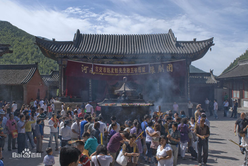 五爺廟里殿內(nèi)供奉的五爺是廣濟龍王文殊菩薩的尊稱,也是五臺山五頂文殊菩薩的化身,因而,這里是整個五臺山香火最盛的寺廟。而事實上,應(yīng)該說五爺其實就是文殊菩薩在臺懷本土化,世俗化的產(chǎn)物,它承擔(dān)起了民間俗神的職能,寄托著當(dāng)?shù)匕傩掌砼物L(fēng)調(diào)雨順、平安吉祥的愿望。也許正是因為五爺比起其他各大寺院里莊嚴肅穆的菩薩們更親近群眾,更符合急功近利的眾生心愿的緣故吧,小小的五爺廟,在善男信女們的心目中,它幾乎成了有求必應(yīng)的象征,上五臺山燒香的人大部分都是沖著五爺廟去的。在群眾心目中,他們不懂什么佛理,甚至不知道文殊菩薩,但只要一說五爺廟,則遠近聞名,幾乎成了五臺山的一張名片。