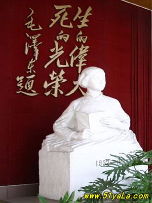 劉胡蘭(1930-1947),中國(guó)共產(chǎn)黨黨員,1946年參加革命,1947年山西軍閥閻錫山的軍隊(duì)突然襲擊時(shí)被捕,英勇不屈,在敵人鍘刀下壯烈犧牲。毛澤東曾在當(dāng)時(shí)《晉綏日?qǐng)?bào)》上為之題詞:“生的偉大,死的光榮?!?/p>