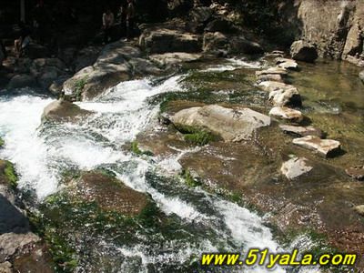 過(guò)了洗臉盆便是水簾洞。一股兩米寬的泉水從北峽溝的洞中涌出,緩流四五十米后順山崖直壁而下,一派“飛流直下三千尺”的磅礴氣勢(shì)。其后一深洞,嘩嘩瀑布落就半崖伸出的青石板上,打著飛快的漩渦卷人洞內(nèi),而后又從洞底端漏口處噴出,驚濤駭浪之聲震山蕩谷。泉水正是莽河之源。這個(gè)洞叫“出水洞”,一年四季泉水奔流不息。泉水流經(jīng)之處,有一個(gè)懸崖,形成瀑布,這就是莽河著名的風(fēng)景區(qū)“水簾洞”,因?yàn)閼已轮虚g有個(gè)洞,像是在瀑布中間有個(gè)巨莽的腦袋,蟒口大張,吸水噴霧,戲耍流泉。另有一塊巨石,像是一只烏龜從甲殼底下探出了頭,似乎在祈求幫助。嘩嘩瀑布落就半崖伸出的青石板上,打著飛快的漩渦卷人洞內(nèi),而后又從洞底端漏口處噴出,驚濤駭浪之聲震山蕩谷。