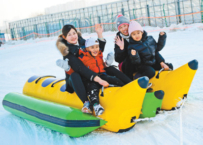 1月1日,河北廊坊市民在安次區(qū)壹佰公園的“冰雪嘉年華”活動(dòng)中乘坐雪地香蕉船。元旦假期,當(dāng)?shù)氐摹氨┘文耆A”活動(dòng)吸引了廣大市民參與游玩,慶祝新年到來(lái)。冰滑梯、雪地香蕉船、雪地足球等多個(gè)項(xiàng)目讓市民盡情享受冰雪運(yùn)動(dòng)的樂(lè)趣。新華社記者 王 曉攝