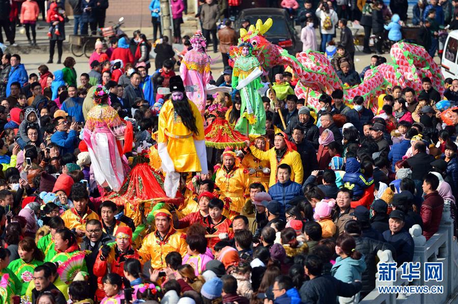 2月21日,社火隊在進(jìn)行巡游拜年。當(dāng)日,有著千年歷史的傳統(tǒng)村落——山東省章丘市三德范村組織31個社火隊舉行社火巡游拜年活動,在元宵佳節(jié)來臨之際為鄉(xiāng)親們送祝福。新華社記者 郭緒雷攝