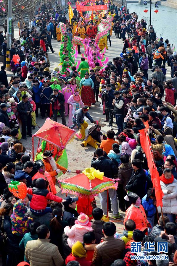 2月21日,社火隊(duì)在進(jìn)行巡游拜年。當(dāng)日,有著千年歷史的傳統(tǒng)村落——山東省章丘市三德范村組織31個(gè)社火隊(duì)舉行社火巡游拜年活動(dòng),在元宵佳節(jié)來(lái)臨之際為鄉(xiāng)親們送祝福。新華社記者 郭緒雷攝
