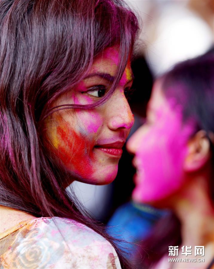胡里節(jié)也叫“灑紅節(jié)”,人們在自己臉上和身上涂上顏料,還向別人拋撒五顏六色的顏料和粉末,迎接春天的到來。新華社發(fā)(吳昂 攝)