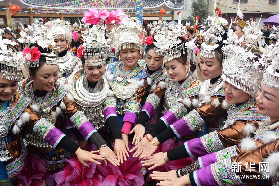 2月7日,廣西融水苗族自治縣安太鄉(xiāng)苗族群眾開(kāi)展傳統(tǒng)的“打同年”民俗活動(dòng)。當(dāng)?shù)財(cái)?shù)百名苗族同胞與游客們歡聚一堂,一起開(kāi)展對(duì)歌、蘆笙踩堂、文藝晚會(huì)等活動(dòng),歡慶新春佳節(jié)。 “打同年”是融水苗族村寨的一種民俗,即友好村寨之間的拜年聯(lián)歡活動(dòng)。新華社記者 李斌 攝