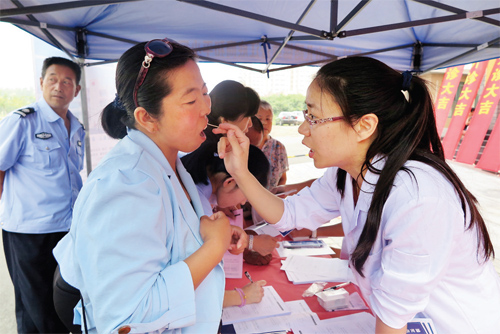 據(jù)了解,我市“幸福啟航·口腔健康公益行”活動(dòng)由忻州美源口腔醫(yī)院負(fù)責(zé)執(zhí)行實(shí)施。該醫(yī)院是山西紅十字口腔醫(yī)院在我市開(kāi)設(shè)的第一所分支機(jī)構(gòu),依托450名專(zhuān)業(yè)口腔醫(yī)護(hù)團(tuán)隊(duì),配備國(guó)際頂尖的牙科診療設(shè)備,讓忻州市民享受到國(guó)際水準(zhǔn)的口腔醫(yī)療體驗(yàn)。據(jù)悉,忻州美源口腔醫(yī)院將成立專(zhuān)家組深入社區(qū)為廣大市民開(kāi)展免費(fèi)口腔檢查,為牙列不齊、缺失牙的貧困家庭婦女兒童,提供每例最高5000元的醫(yī)療資助服務(wù)。該院負(fù)責(zé)人表示,希望通過(guò)本次活動(dòng)能夠傳播正確的口腔健康觀念,教授口腔健康保健知識(shí),讓我市更多的市民有一口好牙。圖為口腔專(zhuān)家現(xiàn)場(chǎng)為市民檢查口腔(張志遠(yuǎn) 王菲)