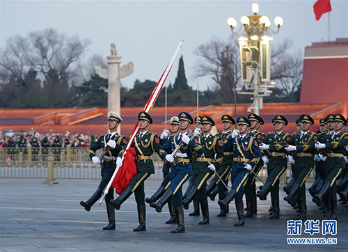 1月1日晨,北京天安門廣場舉行隆重的升國旗儀式。 新華社發(fā)(唐召明 攝)