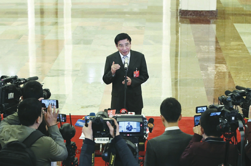 3月5日上午,十三屆全國人大二次會議開幕會結束后,第二場“部長通道”舉行。銀保監(jiān)會主席郭樹清、商務部部長鐘山、交通運輸部部長李小鵬、工信部部長苗圩、海關總署署長倪岳峰、國家市場監(jiān)管總局局長張茅、農業(yè)農村部部長韓長賦、國臺辦主任劉結一先后亮相,回應熱點問題。