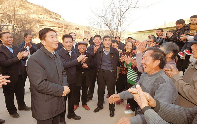 三月二十五日,駱惠寧在臨縣大禹鄉(xiāng)前陽(yáng)塔村指導(dǎo)干部進(jìn)村服務(wù)工作,與村民們親切交談,希望在整村脫貧基礎(chǔ)上確立新的目標(biāo),繼續(xù)努力奮斗,使日子越過(guò)越好。
