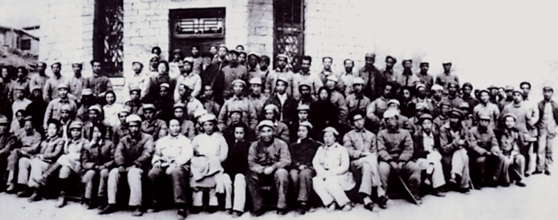 1942年5月2日至23日,在延安整風(fēng)期間,毛澤東同志親自主持召開了有文藝工作者、中央各部門負(fù)責(zé)人共100多人參加的延安文藝座談會。圖為延安文藝座談會代表合影(吳印咸/攝)。