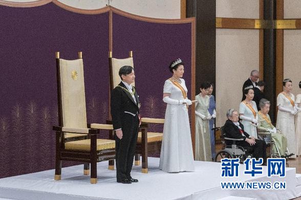 5月1日,在日本東京,日本德仁天皇(左一)及皇后雅子(左二)出席即位儀式。 新華社發(fā)(日本宮內(nèi)廳供圖)