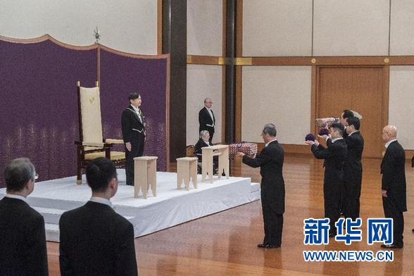 當(dāng)?shù)貢r(shí)間1日上午10時(shí)30分,天皇德仁在皇居“松之間”宮殿舉行即位后第一項(xiàng)儀式“劍璽等繼承之儀”,正式繼承象征皇位的三種神器以及國(guó)印和天皇御璽等。這一儀式持續(xù)大約5分鐘,僅有皇室成年男子和日本首相安倍晉三及內(nèi)閣成員等少數(shù)人參加。