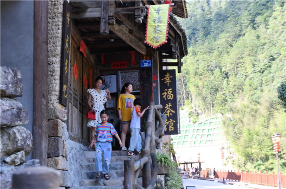 游客在下黨村“幸福茶館”前(8月8日攝)。新華社記者 林善傳 攝