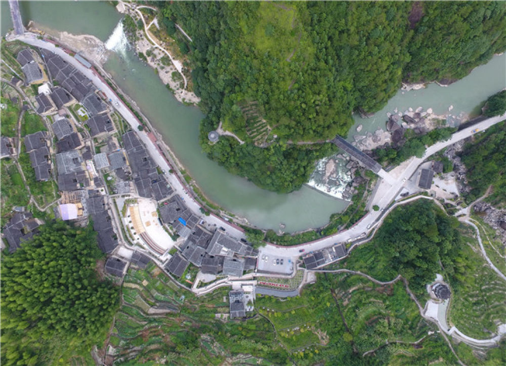 鳥(niǎo)瞰下黨村(8月8日無(wú)人機(jī)拍攝)。新華社記者 林善傳 攝