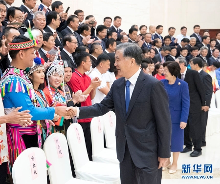 9月8日,第十一屆全國(guó)少數(shù)民族傳統(tǒng)體育運(yùn)動(dòng)會(huì)在河南鄭州隆重開(kāi)幕。中共中央政治局常委、全國(guó)政協(xié)主席汪洋出席開(kāi)幕式。這是開(kāi)幕式之前,汪洋接見(jiàn)運(yùn)動(dòng)會(huì)組委會(huì)全體成員、運(yùn)動(dòng)員代表和工作人員代表。 新華社記者 王曄 攝