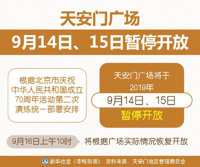 天安門(mén)廣場(chǎng)9月14日、15日暫停開(kāi)放