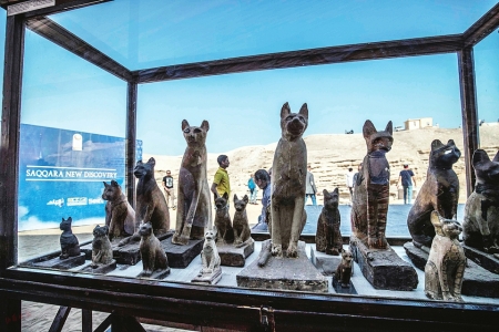 圖為在埃及吉薩省塞加拉地區(qū)拍攝的新發(fā)現的動物雕像。