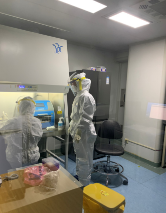 院感科的田芳英主任,專程趕來(lái)傳授實(shí)驗(yàn)室的安全知識(shí)。兩位后勤處的師傅,檢查了空調(diào)排風(fēng)系統(tǒng),以防通風(fēng)不好,造成病毒蔓延,形成醫(yī)源性感染。15:00點(diǎn)整,《新型冠狀病毒檢測(cè)標(biāo)準(zhǔn)操作規(guī)程》制定完畢。17:00,防護(hù)服、護(hù)目鏡、醫(yī)用外科口罩、N95醫(yī)用防護(hù)口罩、隔離衣全部到位。18:00點(diǎn)整,檢測(cè)生物安全柜,以保證生命安全。