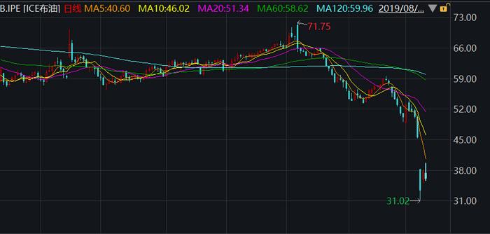 布倫特原油期貨價格走勢圖。