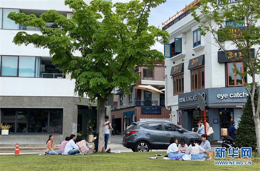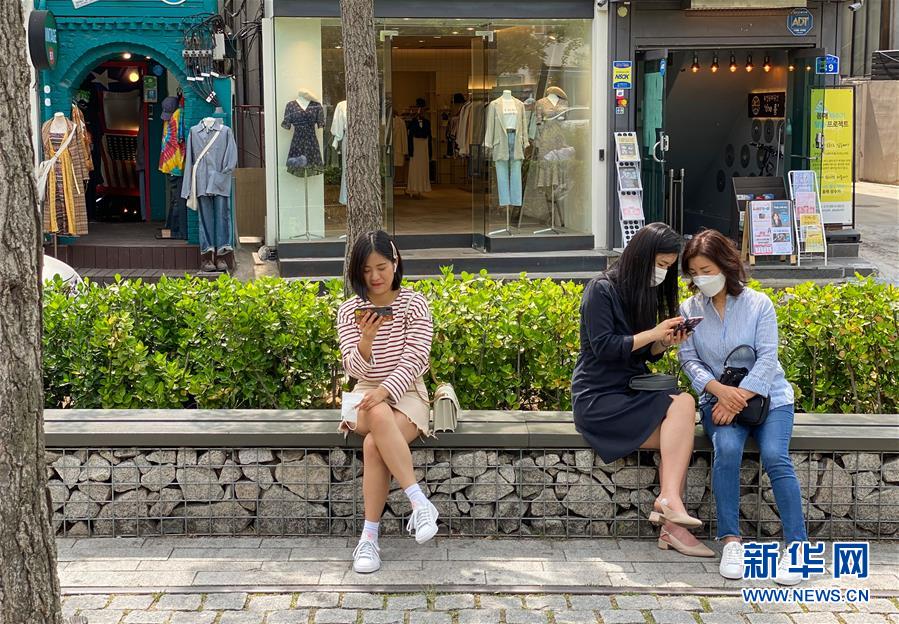 5月3日,在韓國首爾,人們?cè)诤胍娲髮W(xué)附近休閑(手機(jī)拍攝)。新華社記者 王婧嬙 攝