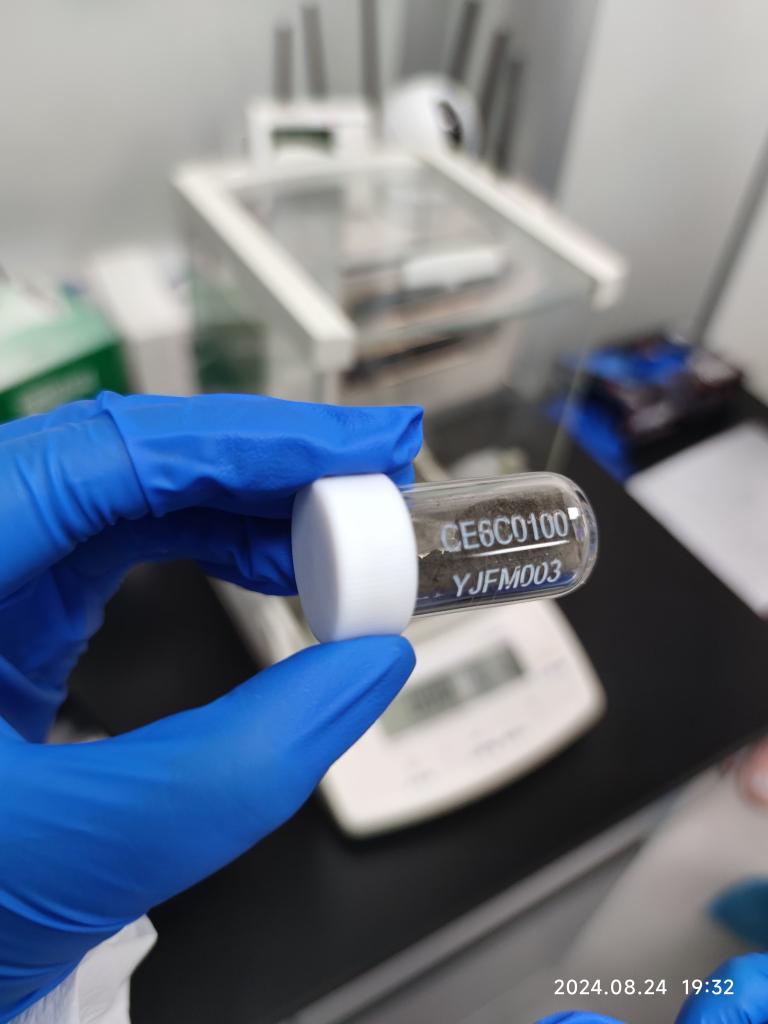 2024年8月24日,在中國(guó)科學(xué)院廣州地球化學(xué)研究所實(shí)驗(yàn)室內(nèi)拍攝的月壤樣品。(中國(guó)科學(xué)院廣州地球化學(xué)研究所供圖)