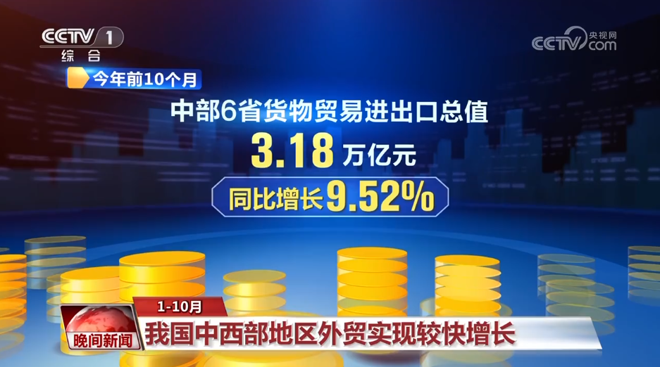 1—10月我國(guó)中西部地區(qū)外貿(mào)實(shí)現(xiàn)較快增長(zhǎng)