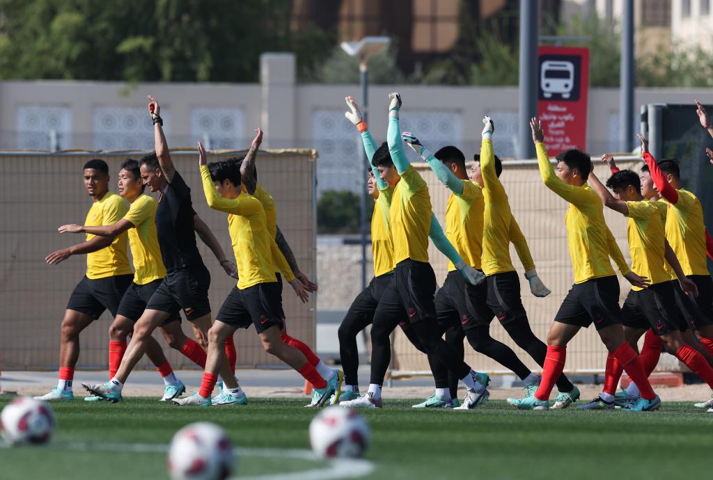 1月11日,中國男足隊員在卡塔爾多哈進行訓(xùn)練,備戰(zhàn)將于1月12日開賽的卡塔爾男足亞洲杯。新華社記者丁汀攝
