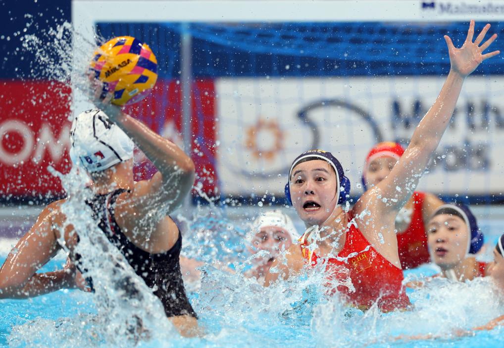 2月6日,中國隊在比賽中。新華社記者 夏一方 攝 女子水球小組賽中,中國隊與法國隊常規(guī)時間戰(zhàn)成6:6平,經(jīng)過點球大戰(zhàn),中國隊最終以總比分11:10險勝。跳水男單3米板預(yù)賽中,謝思埸、王宗源鎖定前兩名晉級半決賽。