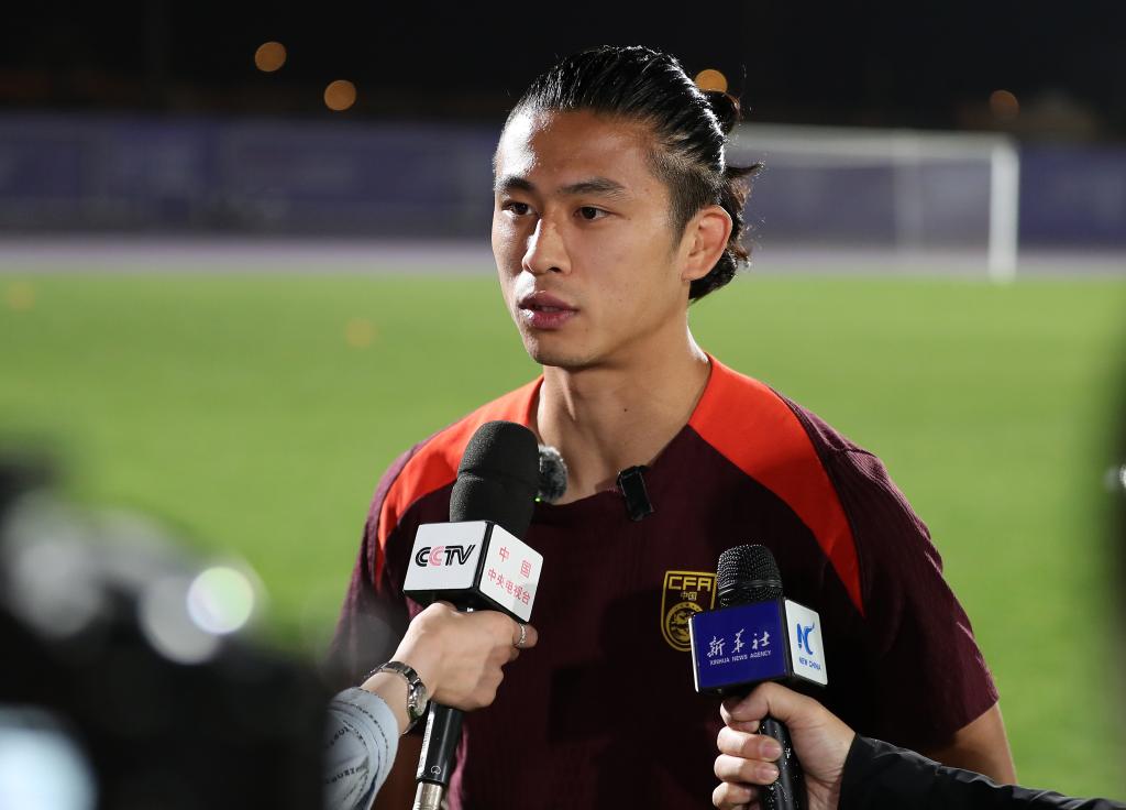 3月18日,中國(guó)隊(duì)球員張玉寧接受媒體采訪。新華社記者 王東震 攝