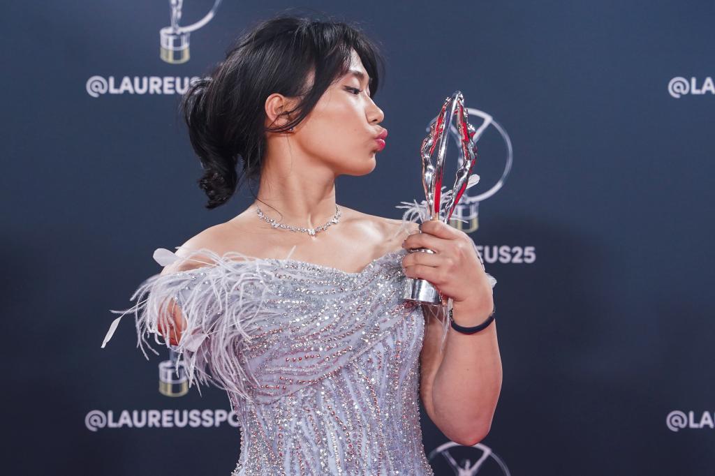 曾于2023年榮膺勞倫斯最佳極限運動員獎的谷愛凌當晚作為勞倫斯獎大使和頒獎嘉賓出席頒獎禮。