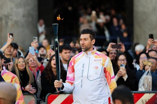 2025年12月6日,在意大利羅馬萬神殿,火炬手、意大利籃球運動員安德烈亞·巴爾尼亞尼在傳遞火炬。當(dāng)日,2026年米蘭-科爾蒂納冬奧會火炬在意大利羅馬傳遞。新華社記者李京攝