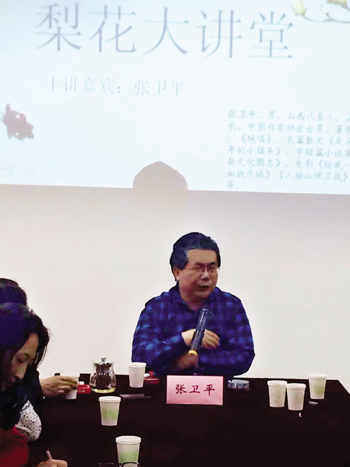 農(nóng)家出身的張衛(wèi)平來(lái)自代縣基層,現(xiàn)為中國(guó)作家協(xié)會(huì)會(huì)員,著有長(zhǎng)篇小說(shuō)《給我一支槍》、《絕唱》,長(zhǎng)篇散文《走馬雁門(mén)》,短篇小說(shuō)集《童年的小搖車(chē)》、中短篇小說(shuō)集《野魂》,電影《給我一支槍》、《浴血雁門(mén)關(guān)》、《血戰(zhàn)午城》、《人祖山保衛(wèi)戰(zhàn)》,電視連續(xù)劇《大宗師》。在這次“梨花大講堂”文學(xué)講座上,張衛(wèi)平從文學(xué)的載體切入,縱論了從口頭文學(xué)到紙質(zhì)文學(xué)、影視文學(xué)、網(wǎng)絡(luò)文學(xué)的演變發(fā)展;結(jié)合自己的創(chuàng)作感悟,站在技術(shù)層面,從語(yǔ)言、人物、情感、結(jié)構(gòu)、思想五個(gè)高度闡述了對(duì)文學(xué)的判斷;站在藝術(shù)的境界,分情感、歷史、精神三大板塊,講解了作品提升的高度。該市偵探小說(shuō)作家狄保壽感到張衛(wèi)平的講解切中了文學(xué)創(chuàng)作的要害,讓大家明白了如何提高文學(xué)創(chuàng)作水平的道理。青年文學(xué)愛(ài)好者李詠梅表示要按照張衛(wèi)平老師的講授,不斷努力,寫(xiě)出更好的文學(xué)作品。該市文聯(lián)主席鄭建芳告訴記者:“梨花大講堂要形成常態(tài)化,為提升全市文學(xué)創(chuàng)作隊(duì)伍整體素質(zhì)發(fā)力?!保ㄌA紅)