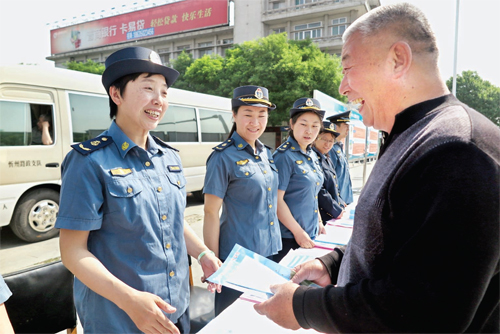 宣傳月活動(dòng)期間,忻州公路分局共出動(dòng)宣傳人員3360 余人次,出動(dòng)宣傳車124 輛次,在所轄各公路超限檢測(cè)站、路政大隊(duì)、服務(wù)大廳、國省干線公路沿線懸掛布幅標(biāo)語140 幅,發(fā)放各類宣傳資料160000余份。各路政大隊(duì)、檢測(cè)站每天播放《山西省公路條例》、《公路安全保護(hù)條例》的錄音宣傳資料,并在當(dāng)?shù)仉娨暸_(tái)飛播宣傳口號(hào)。據(jù)了解,忻州公路分局下一步將在忻州路政服務(wù)大廳展開更有針對(duì)性的宣傳活動(dòng),進(jìn)一步增強(qiáng)廣大人民群眾愛路護(hù)橋的意識(shí),有效預(yù)防超限運(yùn)輸違法行為發(fā)生,為創(chuàng)造良好的路政執(zhí)法環(huán)境提供有效保證。圖為活動(dòng)現(xiàn)場(王菲)
