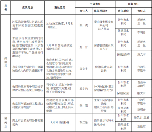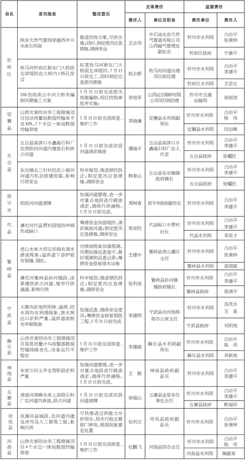 忻州市2016年度汛隱患檢查通報(bào)表