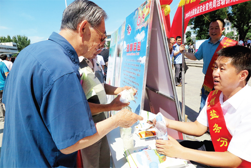忻州市食品藥品監(jiān)管局、忻州市公安局等相關(guān)單位通過擺放宣傳展板、設(shè)立咨詢臺、發(fā)放宣傳資料等形式,為過往市民宣傳普及食品安全知識。各單位執(zhí)法人員現(xiàn)場接受咨詢并為群眾解疑釋惑,詳細講解《食品安全法》及相關(guān)法律法規(guī),以及怎樣預(yù)防食物中毒、保障學(xué)校食堂衛(wèi)生安全等知識。據(jù)統(tǒng)計,活動當天共發(fā)放宣傳資料1萬余份,接待150多人現(xiàn)場咨詢,收到了良好的宣傳效果。