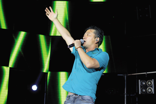 當熟悉而激昂的旋律響起,觀眾們潮水般涌向舞臺前,黑豹樂隊前主唱秦勇傾情演唱的流行經(jīng)典——《無地自容》和《一起長大》,引發(fā)全場觀眾大合唱,耳熟能詳?shù)母枨谙囊估锘匦?,滌蕩著人們燥熱的心靈。